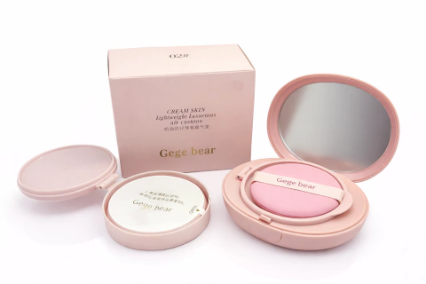 La base cushion Cream Skin Gege Bear ofrece una cobertura ligera con efecto hidratante, ideal para lograr un look natural y luminoso.