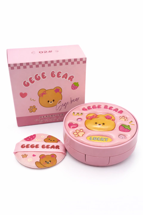Base Cushion Lucky Gege Bear – Maquillaje Compacto Diseño Kawaii Alta Cobertura