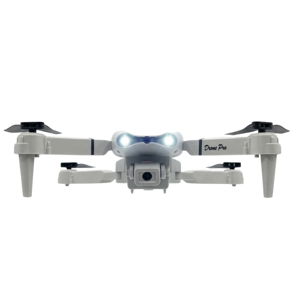 Entre sus características y puntos más relevantes se destacan: Control Remoto: Funciona generalmente con 3 o 4 pilas AA o AAA (no incluidas), que alimentan el mando y el sistema de conexión Wi-Fi con el teléfono.; Características Principales; Cámara: Sistema de cámara dual (frontal e inferior) con transmisión de video en tiempo real a tu celular.; Diseño: Estructura plegable en color blanco y negro, ligera y fácil de llevar en su estuche rígido.; Funciones de Vuelo:.