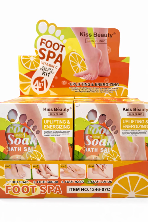 Kit Spa de Pies 4 en 1 Vitamina C Kiss Beauty es un producto ideal para sumar al catálogo de estética por su practicidad, presentación y excelente rotación. Está pensado para quienes buscan resultados funcionales en productos de cuidado personal, maquillaje o tratamiento específico, manteniendo una presentación atractiva y fácil de vender.