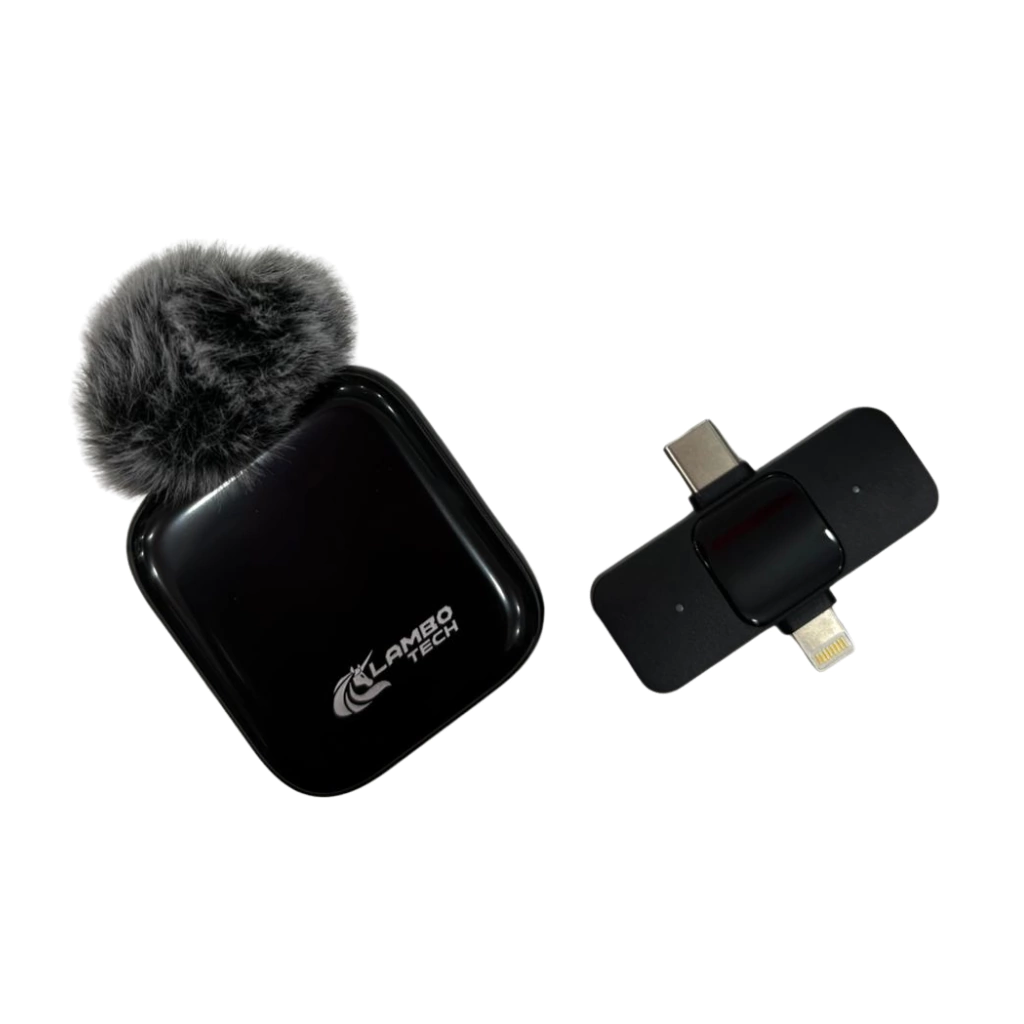 Entre sus características y puntos más relevantes se destacan: Componentes y características:; Transmisor (Micrófono): Cuenta con un clip para sujetarlo a la ropa y viene equipado con un peluche antiviento (paravientos de piel sintética) para reducir ruidos ambientales y de respiración.; Receptor 2 en 1: Es el componente rectangular que se conecta al teléfono. Este modelo destaca por ser híbrido, incluyendo un conector USB-C (para Android y modelos nuevos de iPhone) y un conector Lightning (para iPhones anteriores), lo que garantiza una amplia compatibilidad.; Tecnología: Utiliza transmisión inalámbrica de 2.4G, lo que permite grabaciones con baja latencia y un alcance de hasta 15 a 20 metros sin obstáculos.; Funcionalidad: Es un sistema Plug and Play, por lo que no requiere configuraciones complejas ni aplicaciones adicionales para funcionar; simplemente se conecta y se empieza a grabar..