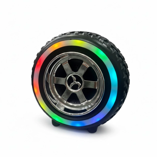 Entre sus características y puntos más relevantes se destacan: Características Principales; Diseño Exclusivo de Rueda: Con textura de neumático real y rin cromado, es el regalo perfecto para los amantes de los autos y el estilo moderno.; Iluminación LED Circular: Un anillo de luces RGB rodea el “neumático”, cambiando de colores para animar cualquier ambiente al ritmo del beat.; Conexión Inalámbrica Estable: Tecnología Bluetooth compatible con smartphones, tablets y laptops para que la música no se detenga.; Audio Nítido y Potente: A pesar de su tamaño compacto, ofrece un sonido claro con bajos reforzados que sorprenden..