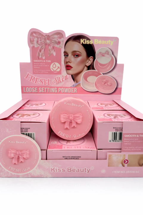 Polvo Fijador de Maquillaje Fresh Skin Kiss Beauty es un producto ideal para el cuidado personal y la rutina de belleza diaria. Destaca por su practicidad, calidad y presentación atractiva, lo que lo convierte en una excelente opción tanto para uso personal como para reventa.