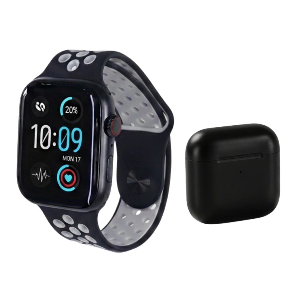 Entre sus características y puntos más relevantes se destacan: ¿Qué incluye este Combo?; Smartwatch W26 Pro Max (Serie 8):; Pantalla Infinita: Resolución nítida con colores vibrantes y múltiples esferas personalizables.; Salud y Deporte: Monitor de ritmo cardíaco, oxígeno en sangre, contador de pasos y múltiples modos deportivos.; Conectividad Total: Recibe notificaciones de redes sociales y controla tu música directamente desde la muñeca..