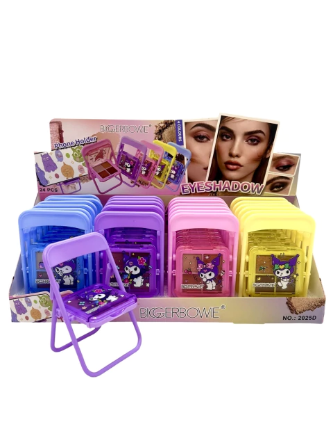 La sombra Sillita Personajes Biggerbowie es una propuesta compacta y divertida que destaca por su presentación original y su fuerte atractivo visual. El formato tipo sillita la hace muy llamativa para exhibición, regalos y ventas impulsivas, especialmente para público que busca maquillaje con packaging creativo.