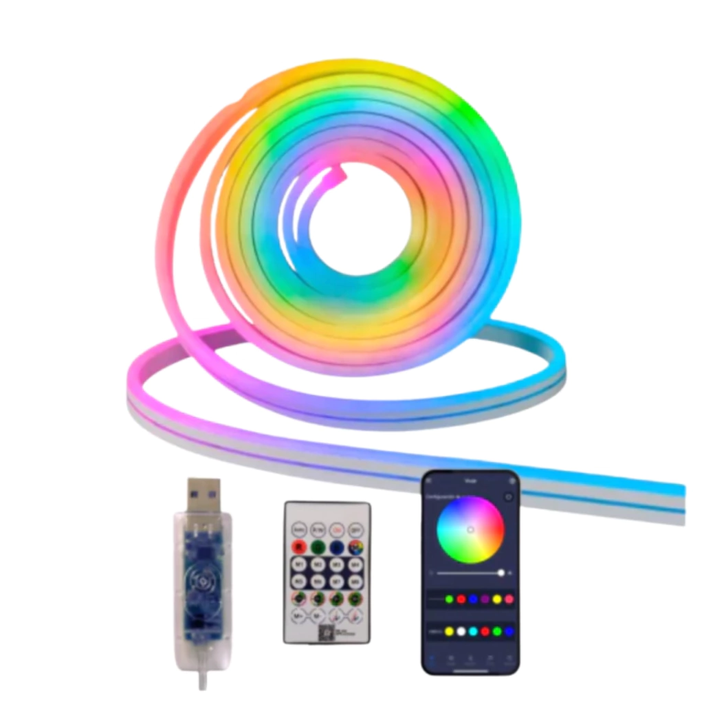 Entre sus características y puntos más relevantes se destacan: TIRA LED NEON RGB Iluminá tus espacios con estilo y color. Esta tira LED neon RGB ofrece una iluminación vibrante y personalizable con múltiples colores y modos de luz. Ideal para decorar ambientes, eventos o crear un ambiente único en tu hogar.; Colores RGB ajustables para una variedad de ambientes; Fácil instalación y flexibilidad para adaptar a cualquier superficie; Bajo consumo energético y larga duración; Dale vida a tus ambientes con tecnología y diseño de vanguardia. ¡Transformá tu espacio hoy!.