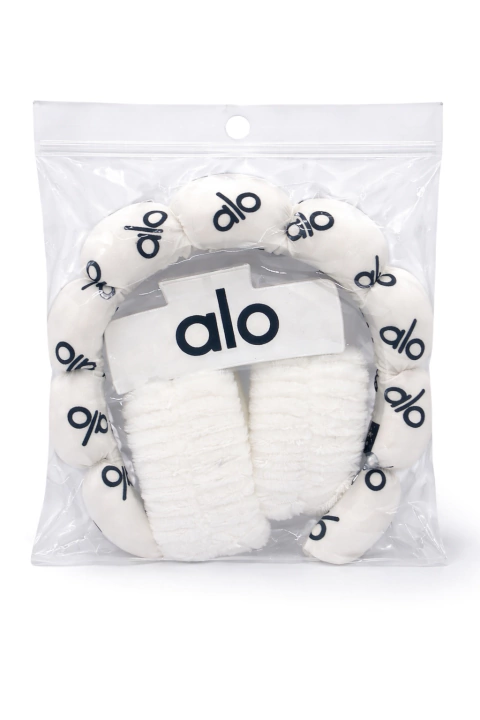 El set de vincha spa con muñequeras ALO está diseñado para facilitar la rutina de cuidado facial de manera cómoda y práctica. La vincha mantiene el cabello alejado del rostro, mientras que las muñequeras evitan que el agua escurra por los brazos durante la limpieza.